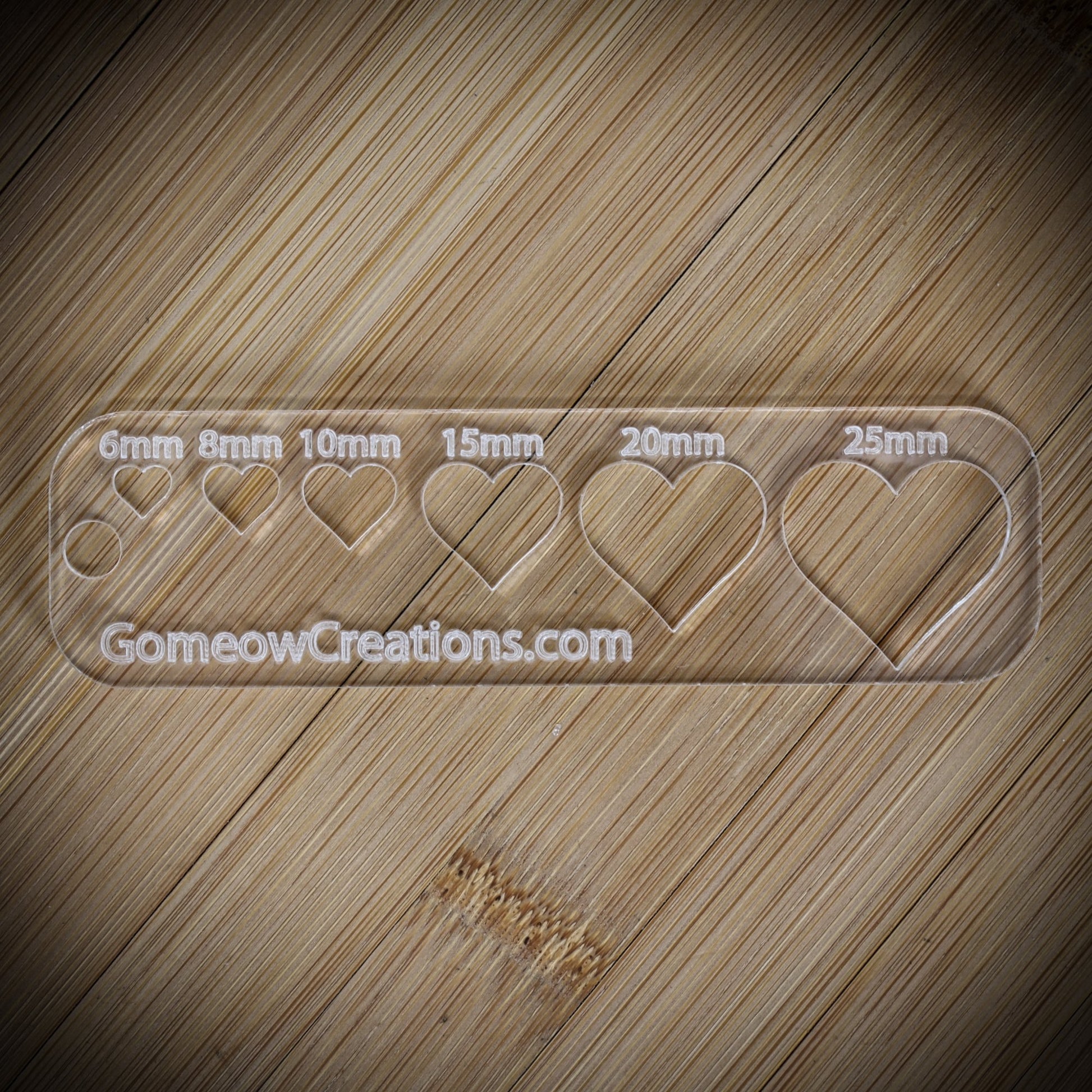 Hearts in the following sizes: 6mm 8mm 10mm 15mm 20mm 25mm